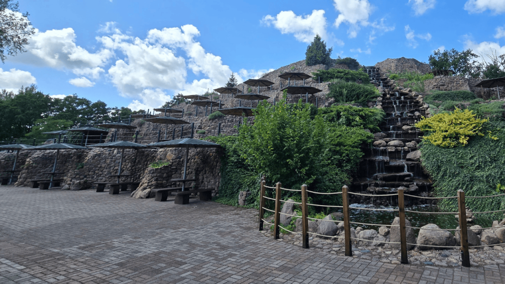 Górka pełni funkcję punktu widokowego i miejsca do odpoczynku, znajdziemy tu ławki oraz stoliki pod parasolami, a z jej szczytu roztacza się widok na okolicę. Zadbane alejki, zielone otoczenie i niewielkie dekoracje, takie jak mini wodospad czy strumyk, dodają temu miejscu wyjątkowego uroku.