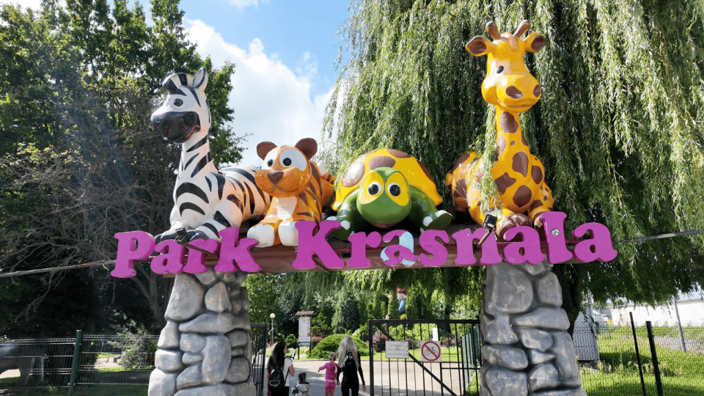 Już przy samym wejściu do Parku Krasnala czeka na nas prawdziwy zestaw atrakcji. Najpierw wzrok przyciąga cała masa kolorowych figur – od bajkowych krasnali, przez rozmaite zwierzęta, aż po dinozaury wyglądające tak, jakby dopiero co uciekły z muzeum przyrody.