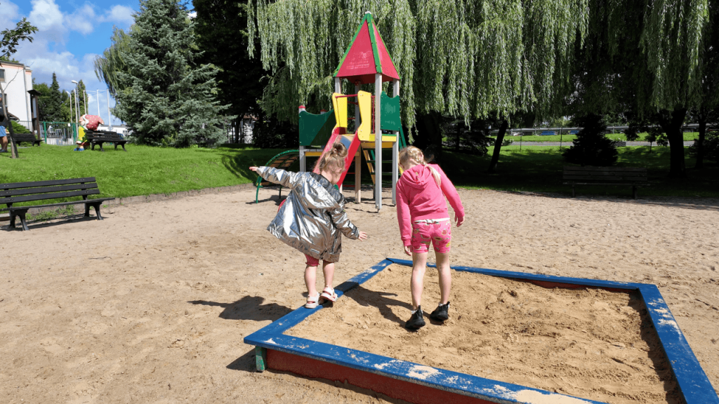 Dziś wracam tu z Małolatą i widzę zupełnie inne miejsce – pełne radości, kolorów, śmiechu dzieci i rodzinnego gwaru. To takie niezwykłe uczucie: patrzeć, jak przestrzeń mojego dzieciństwa zmieniła się w park, z którego teraz korzystają kolejne pokolenia.
