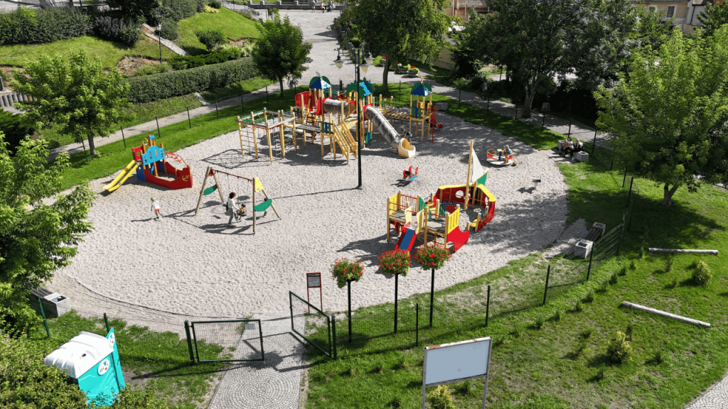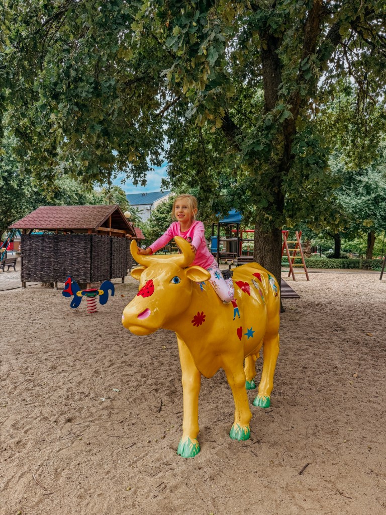Kiedy już nacieszymy oczy tym gigantem, wystarczy zrobić kilka kroków dalej, by trafić na ogromny plac zabaw, uznawany za największy w całym regionie. Zjeżdżalnie, huśtawki, piaskownice i rozmaite konstrukcje do wspinania zapewniają dzieciom mnóstwo radości już od pierwszych minut wizyty.