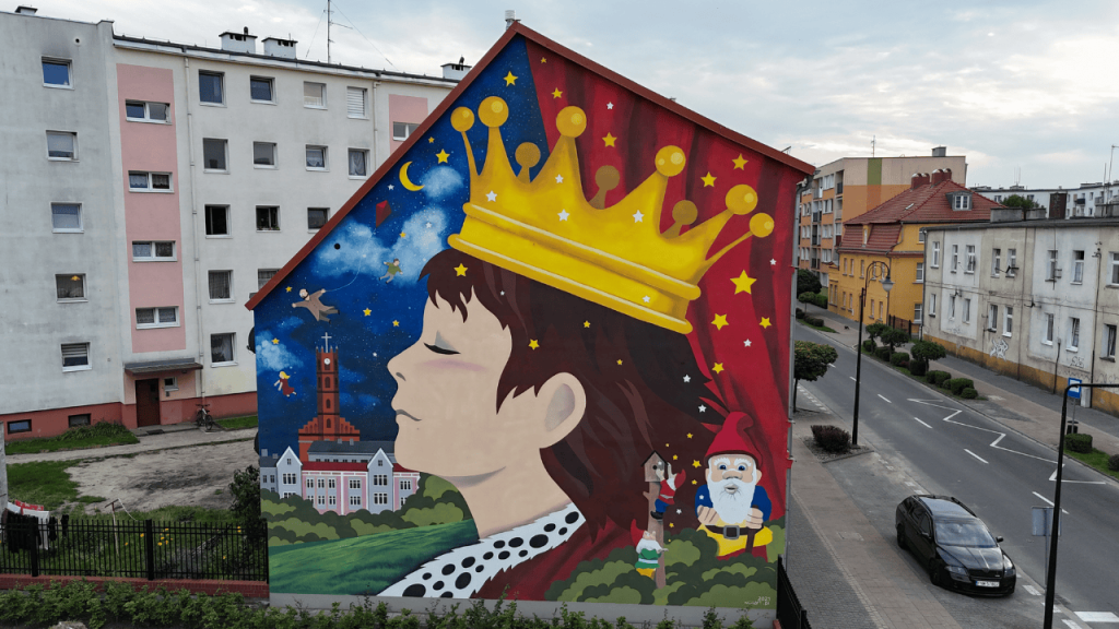 Jednym z ciekawszych projektów i ulubieńcem Małolaty jest mural znany jako „Sen Maciusia”, inspirowany twórczością Janusza Korczaka. Powstaje na ścianie kamienicy przy ul. Witosa 28, na skraju Specjalnego Ośrodka Szkolno-Wychowawczego (SOSW). Projekt realizowany jest przez Stowarzyszenie „Radość”, a jego tematyka nawiązuje do książek Korczaka i dziecięcych marzeń. Kolorowy, bajkowy charakter muralu przyciąga uwagę szczególnie tych najmłodszych. Małolata, kiedy pierwszy raz stanęła przed muralem „Sen Maciusia”, zatrzymała się i patrzyła długo, jakby próbowała wejść w obraz. Kolory, postacie, bajkowy klimat – dla niej to więcej niż dekoracja. To coś, co sprawia, że spacer staje się przygodą, a zwykła ulica galerią.
