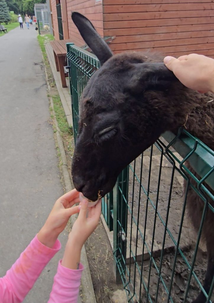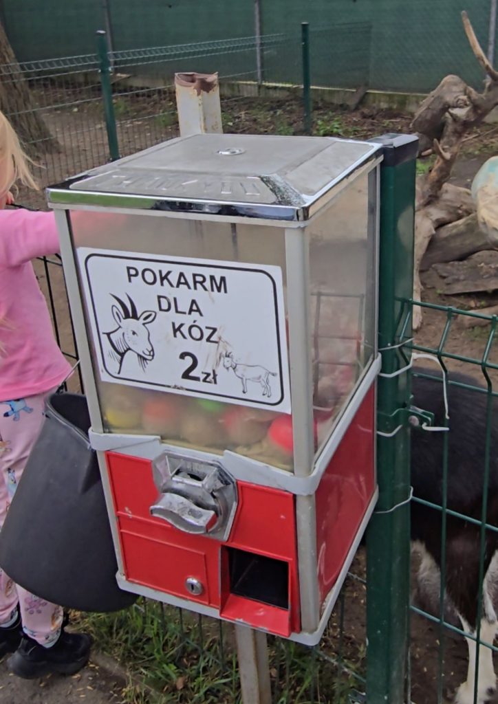 Największą atrakcją dla najmłodszych jest oczywiście karmienie. Przy zagrodach stoją automaty, do których wrzuca się dosłownie parę złotych, a w zamian otrzymuje specjalne kulki ze zbożem. Dla dorosłych to drobiazg, ale dla dziecka ogromna frajda. Małolata była zachwycona! Z zapałem wrzucała przysmaki przez ogrodzenie, a kiedy tylko zwierzę podchodziło bliżej, radościom i okrzykom nie było końca. To jeden z tych momentów, które najlepiej pokazują magię prostych atrakcji, niby nic wielkiego, a w pamięci zostaje na długo.