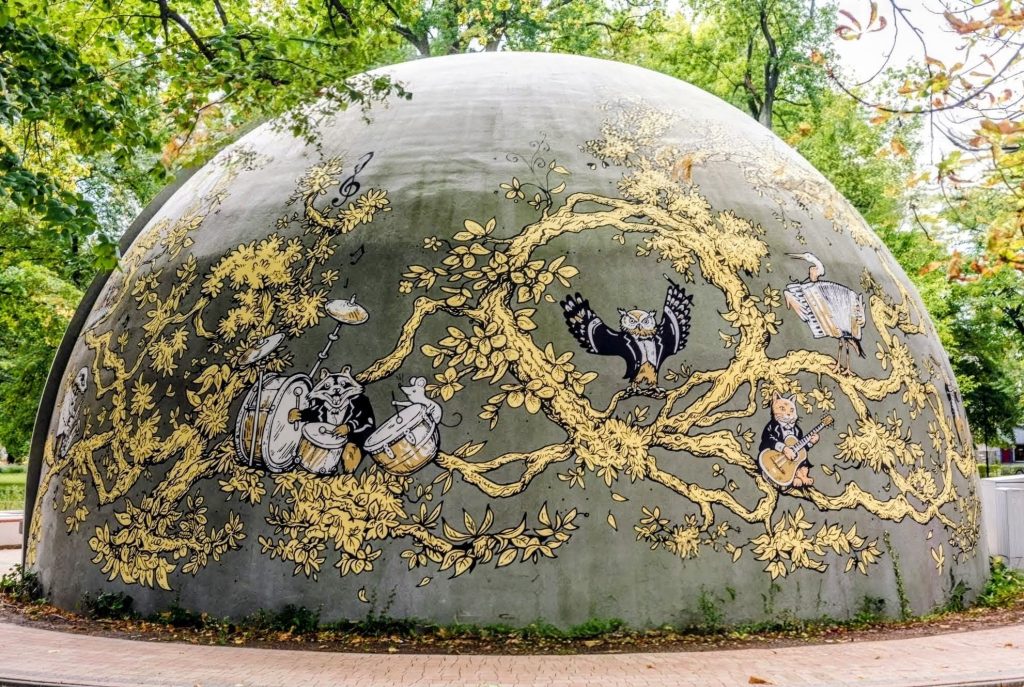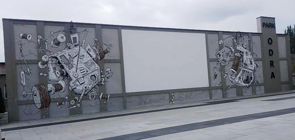 Kolejny mural znajduje się w Parku Odry — muszla koncertowa została udekorowana przez artystów z pracowni Takie.Pany. Przez kilka dni powstał obraz, który przypomina ilustracje z bajek: zwierzęta grają na instrumentach. To murale, które budzą uśmiech i poczucie lekkości.