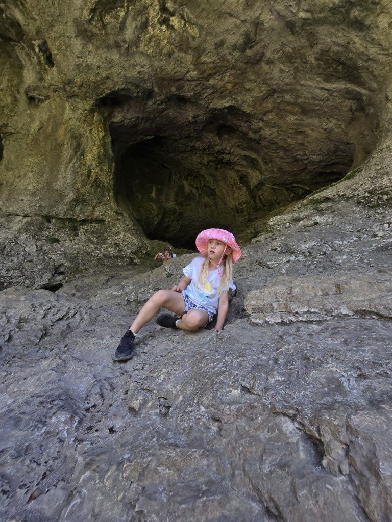Do niektórych można się wspiąć – np. do jaskini Reynarda – ale to już wymaga trochę więcej siły i gibkości. Małolata próbowała, ale w pewnym momencie uznaliśmy, że nie ma co ryzykować. Nie wszystko musi być na raz. W końcu miała dopiero sześć lat, a i tak dawała radę lepiej niż niejeden dorosły turysta, którego mijaliśmy po drodze.