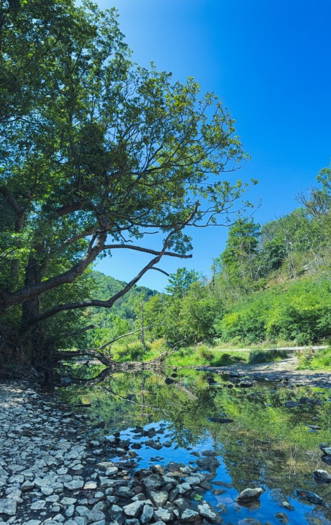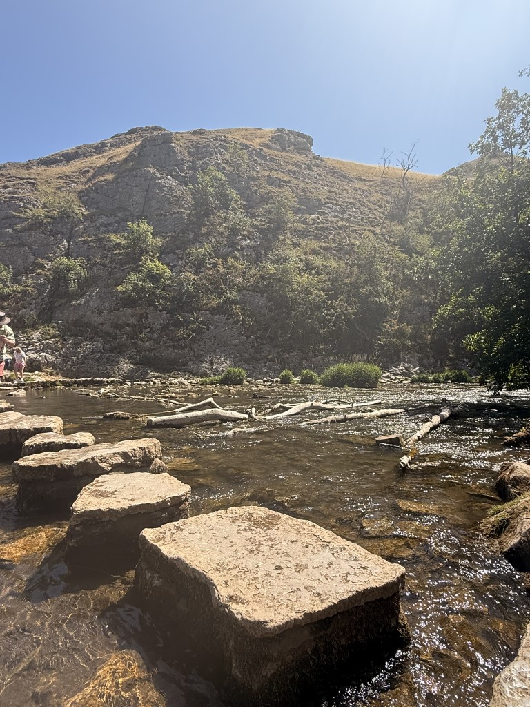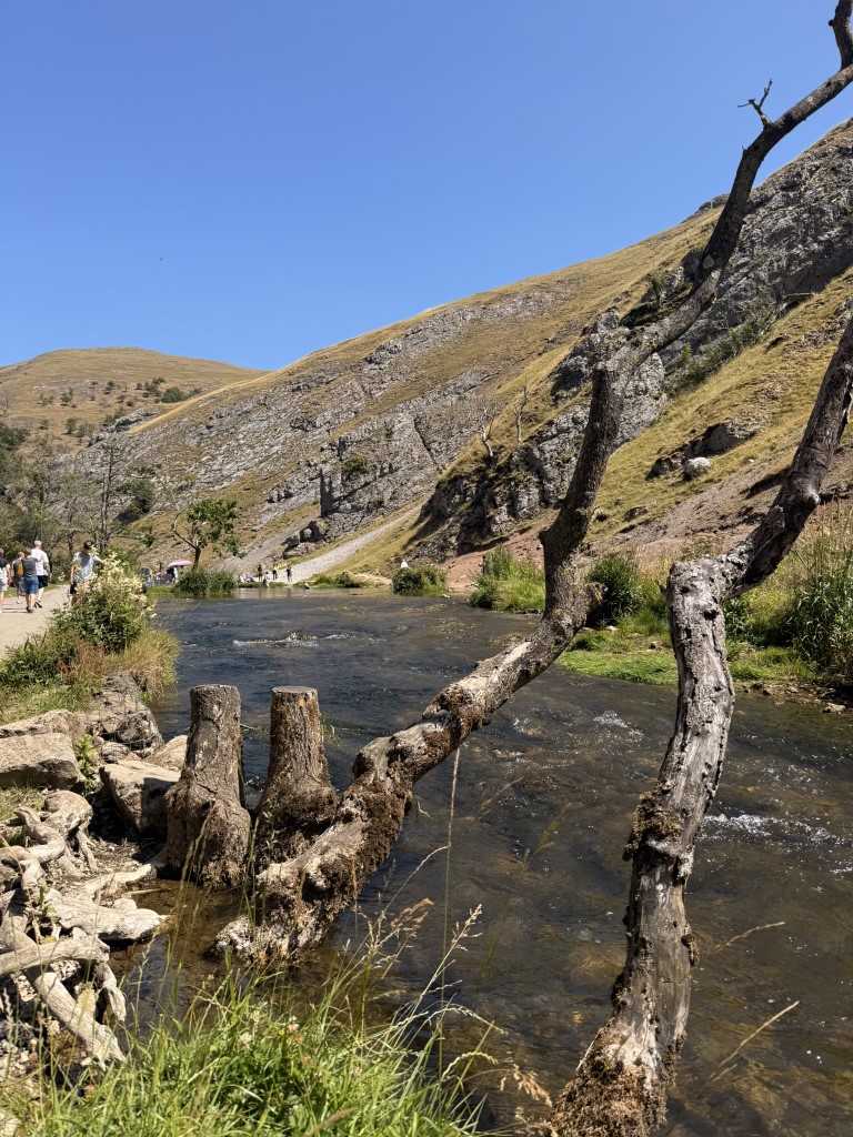 Dovedale chodziło nam po głowie już od jakiegoś czasu. Na zdjęciach wyglądało bajecznie: wapienne skały, zielone wzgórza, przejrzysta rzeka Dove, która wije się w dolinie jak z obrazka. Wiedzieliśmy, że to miejsce jest dość popularne, ale dopiero teraz udało nam się zebrać i ruszyć na tę przygodę. I choć trochę nas tłum ludzi zaskoczył (no dobra, sobota, upał i wakacje – czego się spodziewaliśmy?), to Dovedale i tak zrobiło na nas ogromne wrażenie.