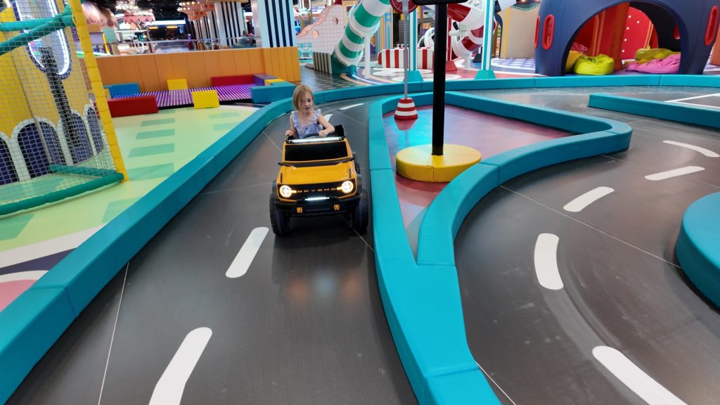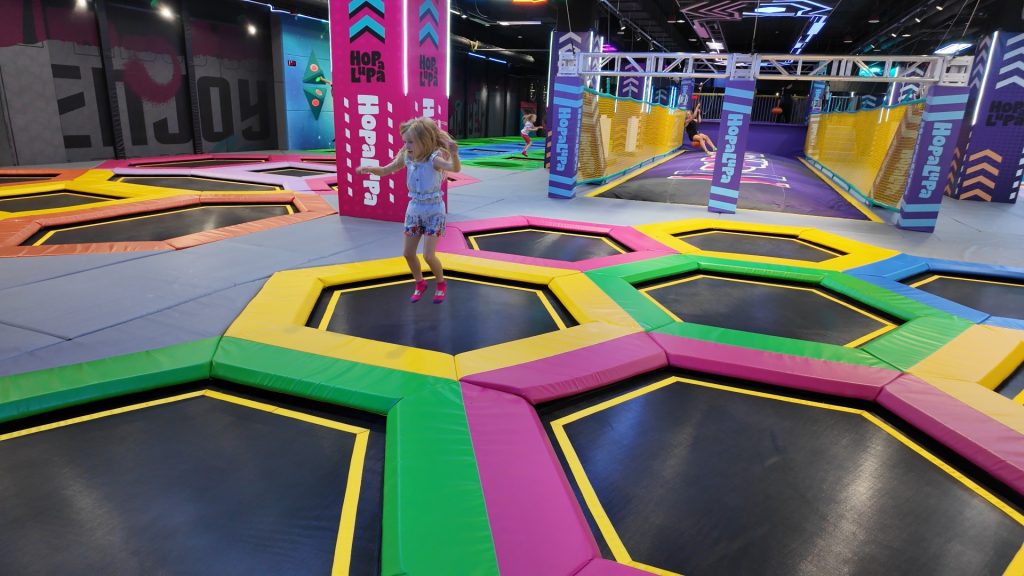 My najpierw bawiliśmy się w Hopalupa City, potem zrobiliśmy przerwę na jedzenie i dopiero po przerwie poszliśmy do strefy trampolin. Takie rozdzielenie świetnie się sprawdziło – mieliśmy czas na odpoczynek, a Małolata mogła pobawić się z nową energią.