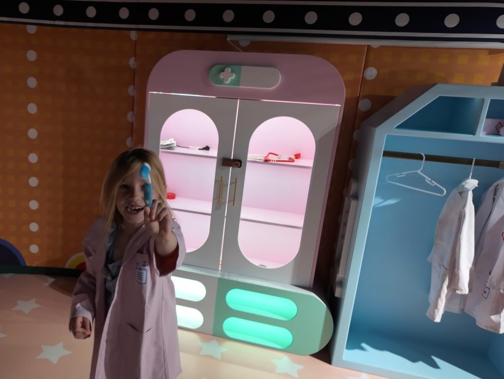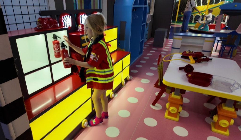 Na pierwszy ogień poszła straż pożarna i komisariat policji, gdzie Małolata wcieliła się w rolę zarówno dzielnej ratowniczki, jak i czujnej pani sierżant. Potem weszliśmy na piętro, gdzie czekał m.in. gabinet weterynaryjny i lekarski, a na dole fryzjer i salon kosmetyczny. Zabawa w „dorosłych” poszła w ruch, a my razem z nią.