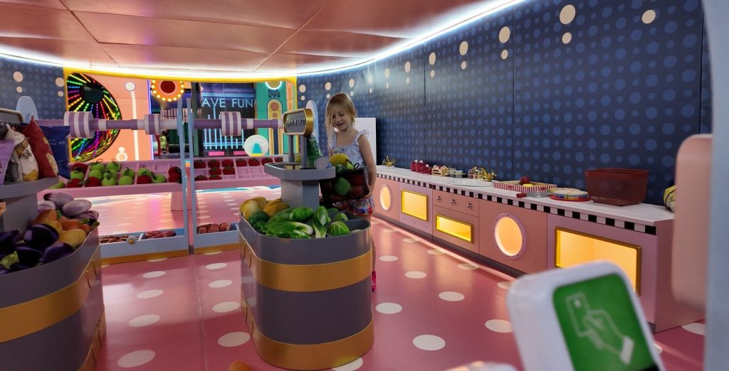 W środku znajduje się kilka różnych stref tematycznych, które są dopasowane do wieku i zainteresowań najmłodszych. Jest np. Hopalupa City – kolorowe miasteczko dla dzieciaków w wieku przedszkolnym, z mini sklepikami, tunelami, zjeżdżalniami i nawet małym statkiem kosmicznym.