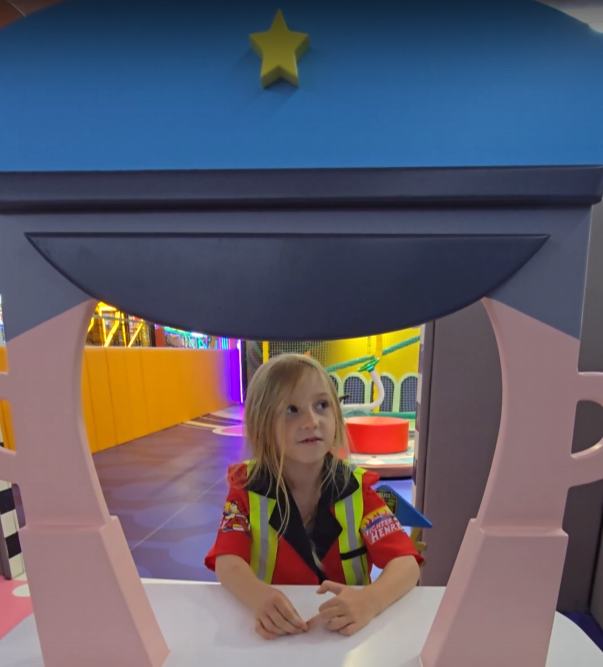 Małolata nie od razu rzuciła się w wir zabawy. Już przy wejściu zrobiło się dość głośno, światła, dźwięki, automaty do gier, dzieciaki biegające we wszystkie strony. Widać było, że Michalina trochę się speszyła, więc postanowiliśmy zacząć spokojnie od strefy Hopalupa City, czyli dziecięcego miasteczka pełnego tematycznych domków.